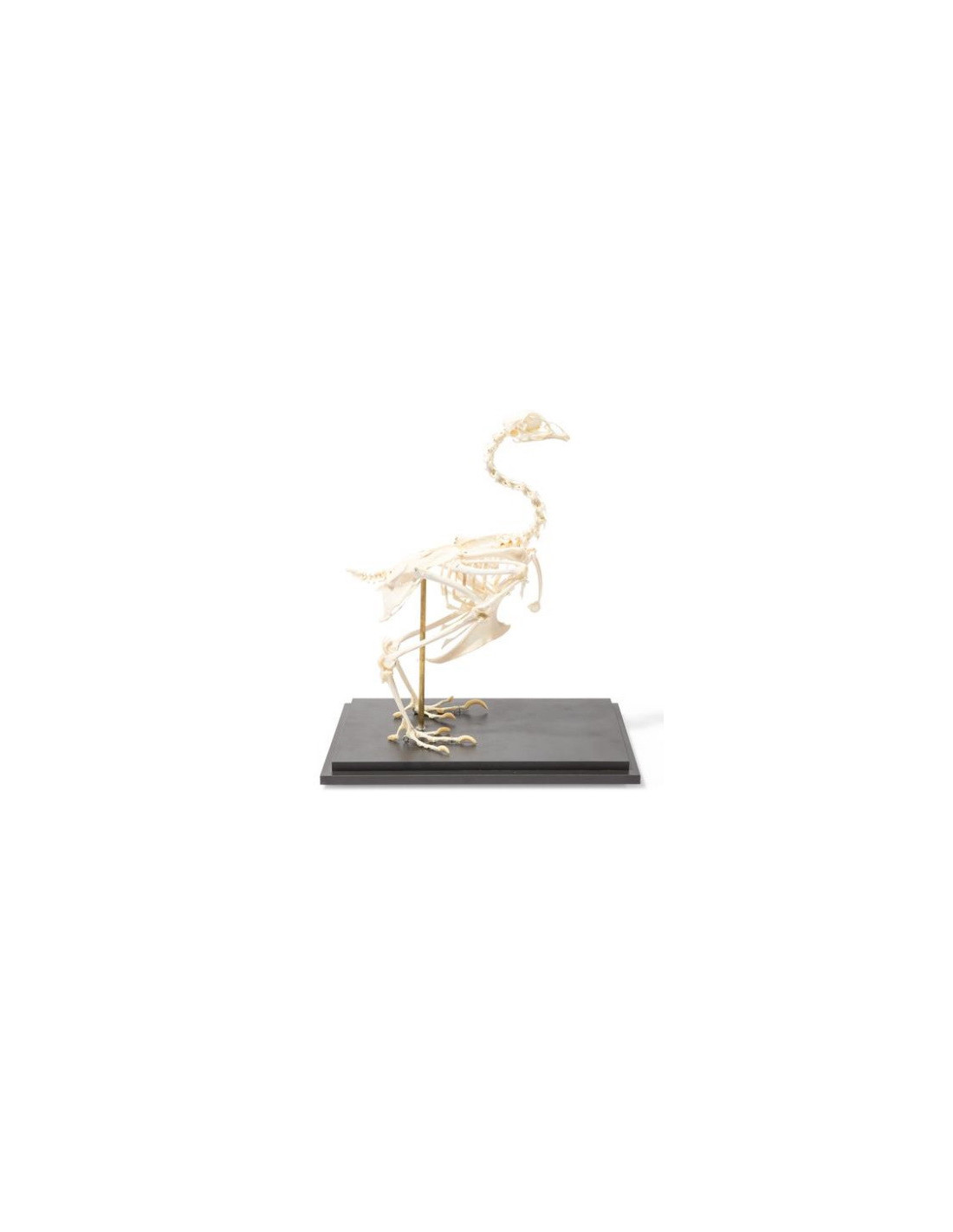 Predstavlja tipičan primjer ptice. Pileći kostur izvrsno je pogodan za anatomske studije ili usporednu anatomiju jer su i najmanje pileće kosti jasno vidljive. Postavljen na osnovnu ploču.
