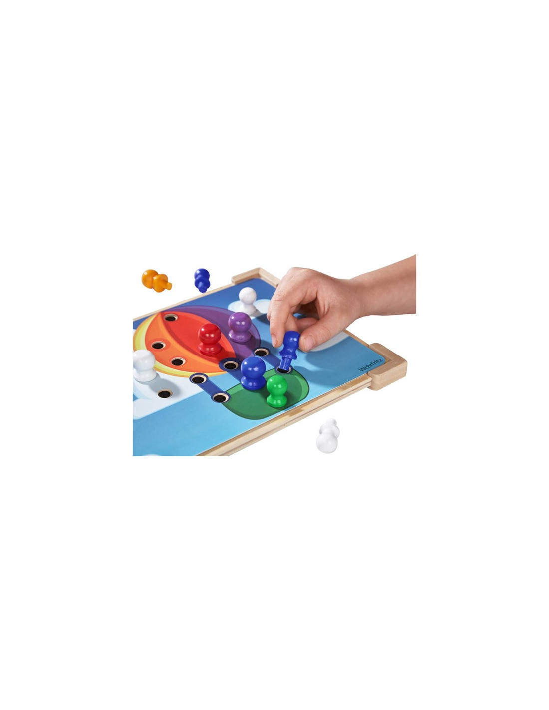 U oslikanoj kutiji od čvrstog kartona nalazi se 1 drvena ploča s utorima dim. 29x19 cm, 8 tematskih predložaka s utorima i 35 drvenih čavlića u boji (14 čavlića promjera 2 cm, 21 čavlić promjera 1,6 cm).