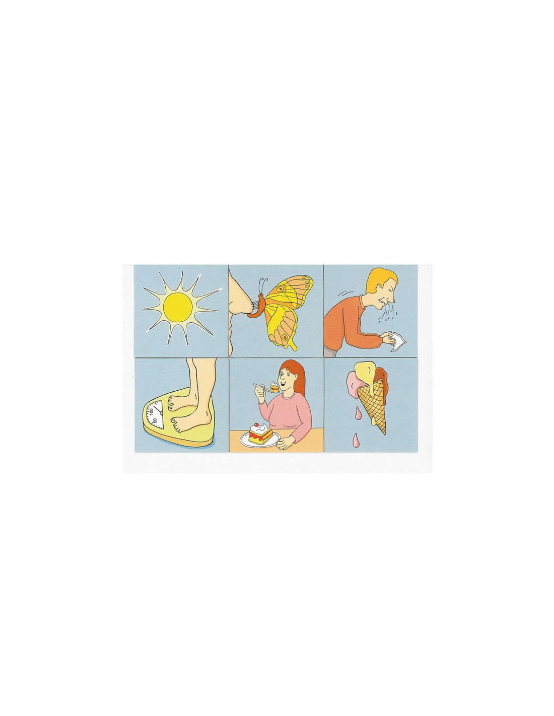 Ovih 48 kartica (24 para) prikazuje uzrok i posljedicu različitih aktivnosti, npr. ako sunce jako sija, sladoled će se rastopiti, ako netko baci koru od banane na pod, netko drugi će se na nju poskliznuti, ako leptir sleti na