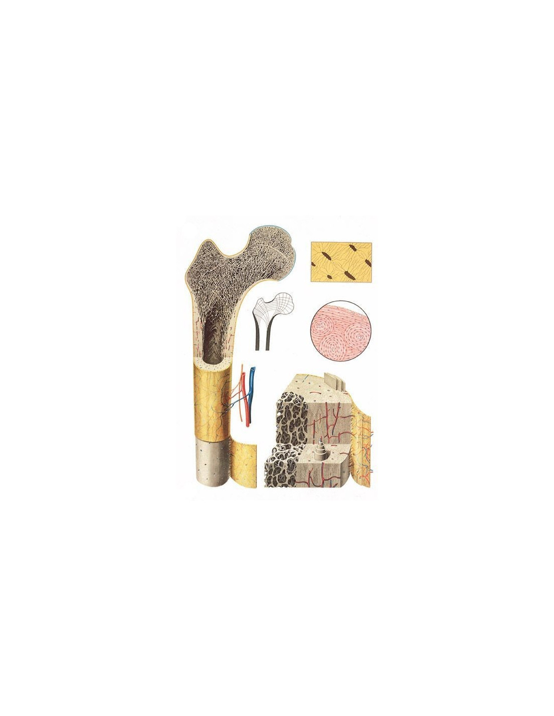 Karta zidna bez teksta koja prikazuje strukturu ljudske kosti, kao i mikroanatomiju.