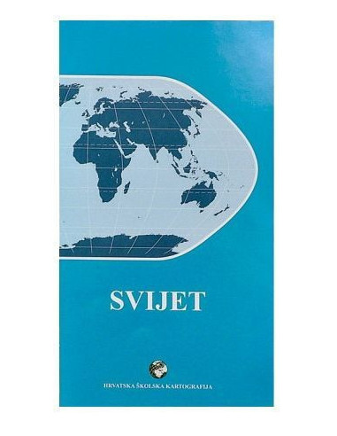 Geografska zidna karta kaširana na platno s letvicama, dim. 182x178 cm.