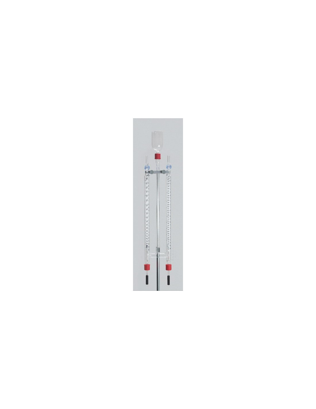 Sastoji se od dvije graduirane cijevi za prikupljanje plina, svaka sa staklenim pipcem i GL-18 priključcima za elektrode, spojene staklenom cijevi s priključkom GL-18 s posudom za kompenzaciju.