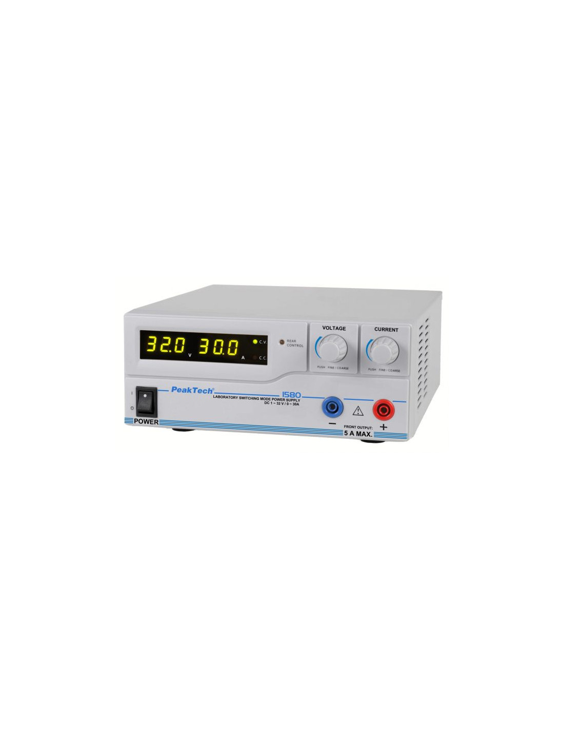 Visokoučinkovito napajanje za maksimalno 32V / 30A DC, što je jednako kontinuiranoj snazi od 960 W. Dvostruke funkcijske tipke (grubo i fino podešavanje) omogućuju jednostavno, precizno i brzo podešavanje vrijednosti napona i struje zahvaljujući rotacijskom enkoderu i mikroprocesorskom upravljanju. Na stražnjoj strani nalazi se priključna utičnica za analogni daljinski upravljač i unaprijed postavljena sklopka za tri unaprijed postavljene izlazne vrijednosti. Sve postavke za izlaznu struju i izlazni napon, kao i vremenski programi i funkcija zapisivanja podataka, mogu se implementirati pomoću priloženog PC softvera. Pomoću USB sučelja na stražnjoj strani uređaja moguće je spojiti napajanje na Windows računalo. Inteligentno upravljanje ventilatorom prilagođava brzinu vrtnje odgovarajućoj temperaturi i izlaznoj snazi. Izlazni napon i ograničenje struje mogu se postaviti i u otvorenom krugu bez priključenog opterećenja. Zahvaljujući visokim performansama i kompaktnom dizajnu, ova serija napajanja idealna je za profesionalnu primjenu u industriji i strojarstvu.