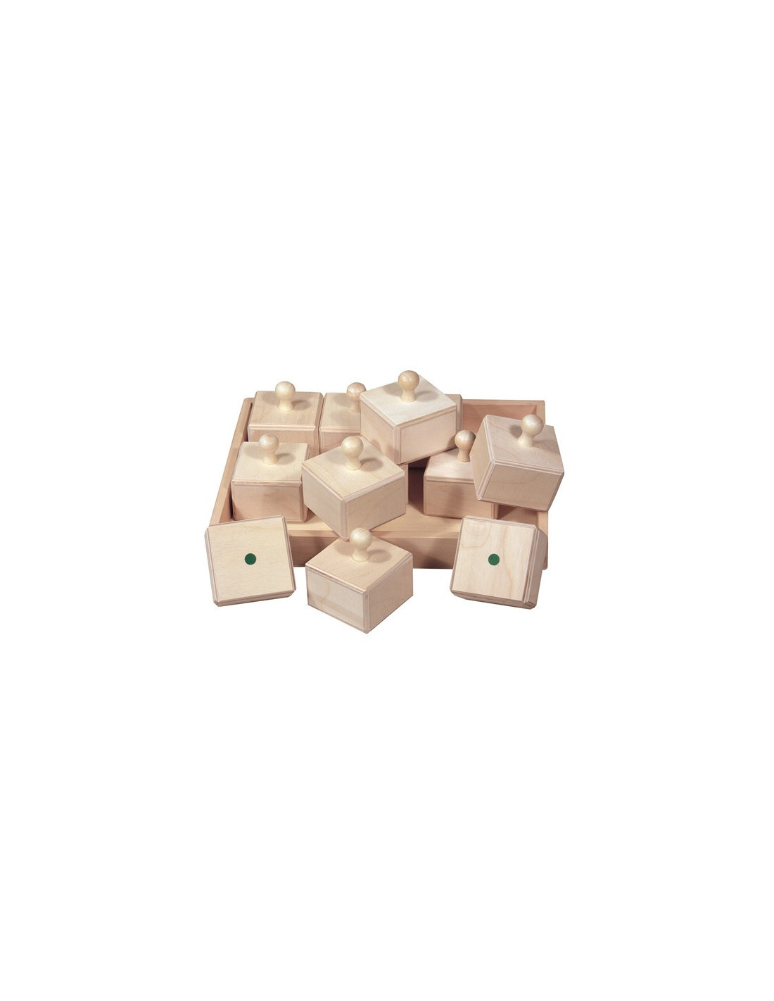 Na drvenoj podlozi veličine 32x24x8cm postavlja se 12 drvenih kutijica s granulatom, koje šuškaju prilikom trešnje. Dimenzije svake kutijice su 7x8cm