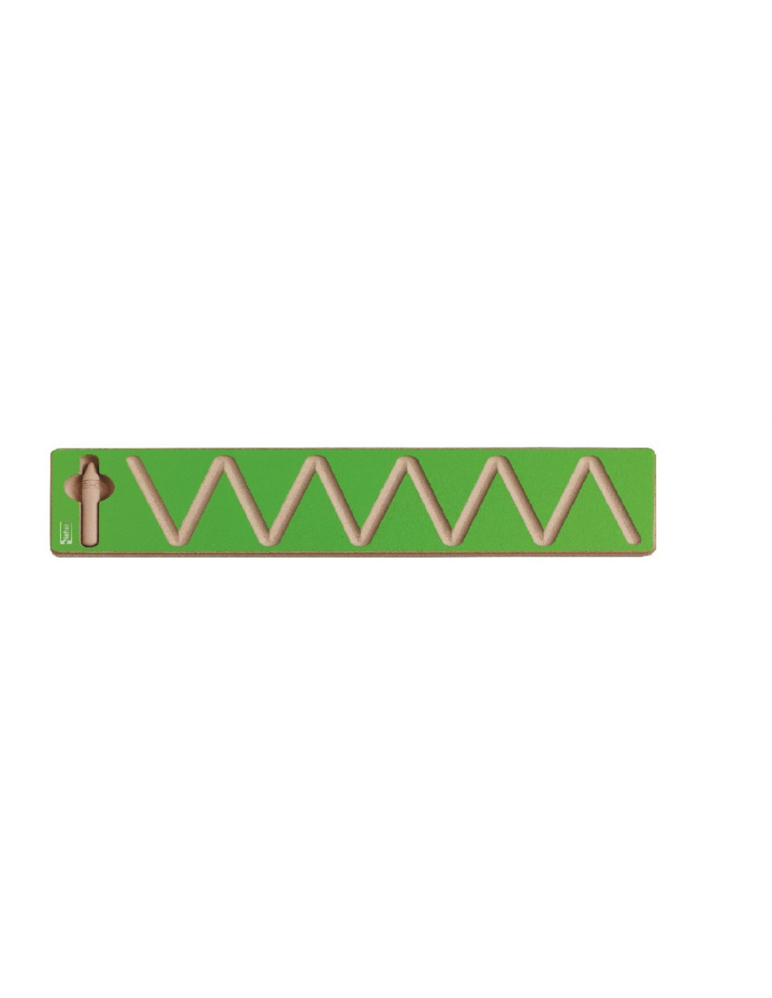 Dijete drvenom olovčicom prati uzorak na ploči bez podizanja ruke u ispravnom smjeru te se tako upoznaje s pisanjem, stječe vještinu i kontrolu pokreta. Vježba pisanja istovremeno razvija koncentraciju i sposobnost predviđanja unaprijed.
